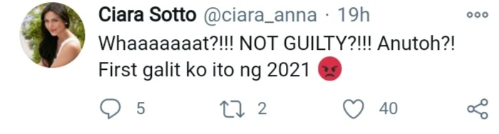 Ciara Sotto: “Whaaaaaaat?!!! NOT GUILTY?!!! Anutoh?! First galit ko ito ng 2021” Gil